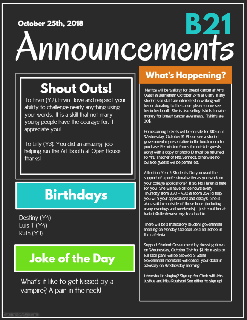 Announcements- 10/25