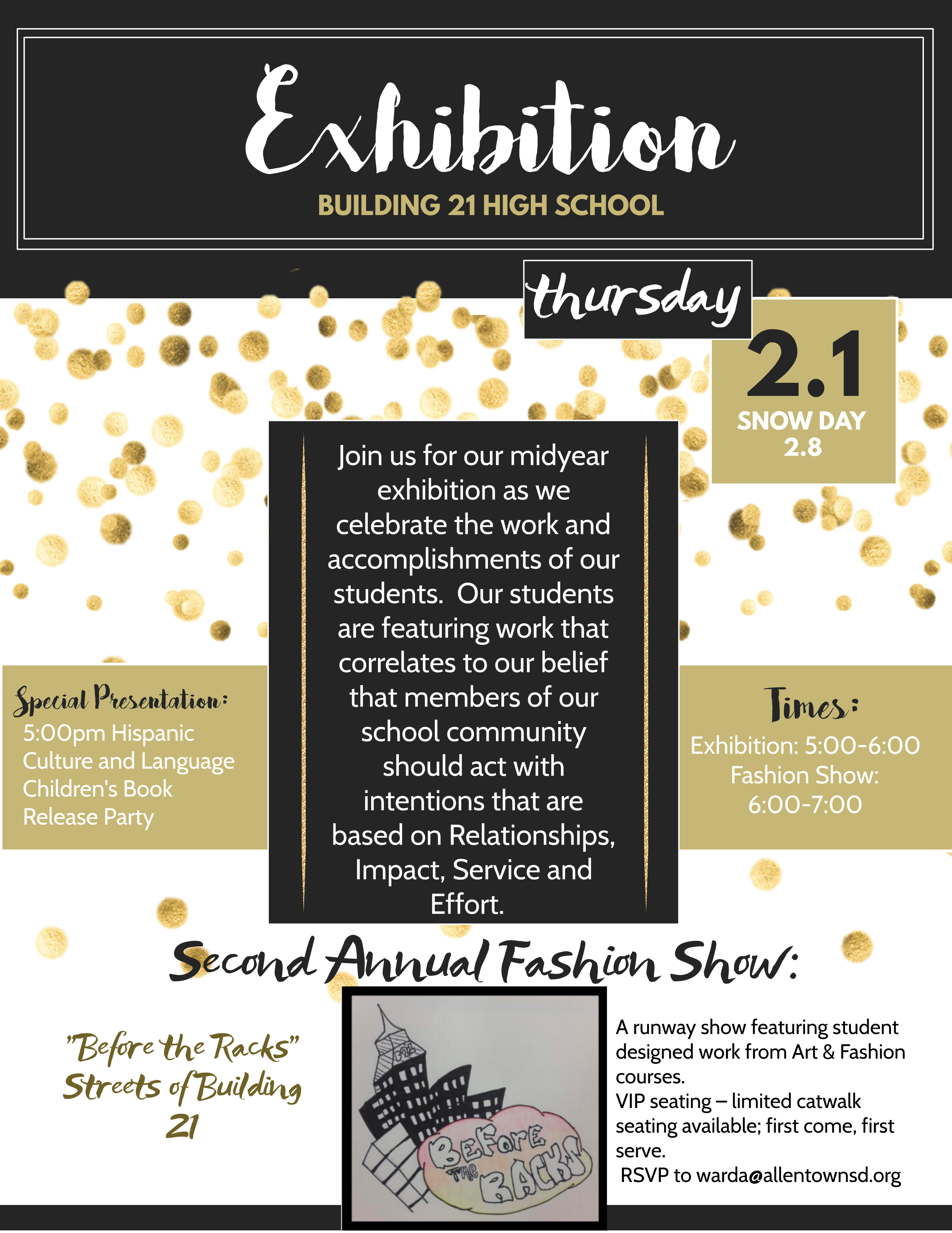 Mr. Ward is forming the Fashion Show Planning Team – this team will lead the design and planning of this year’s event.  Please sign up with your advisor or Mr. Ward by weeks end (11/10). Year 2 and 3 only.