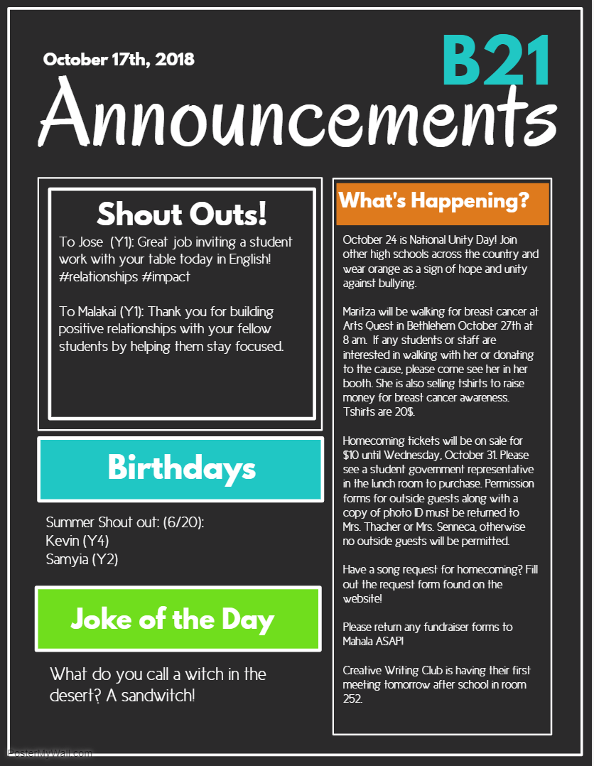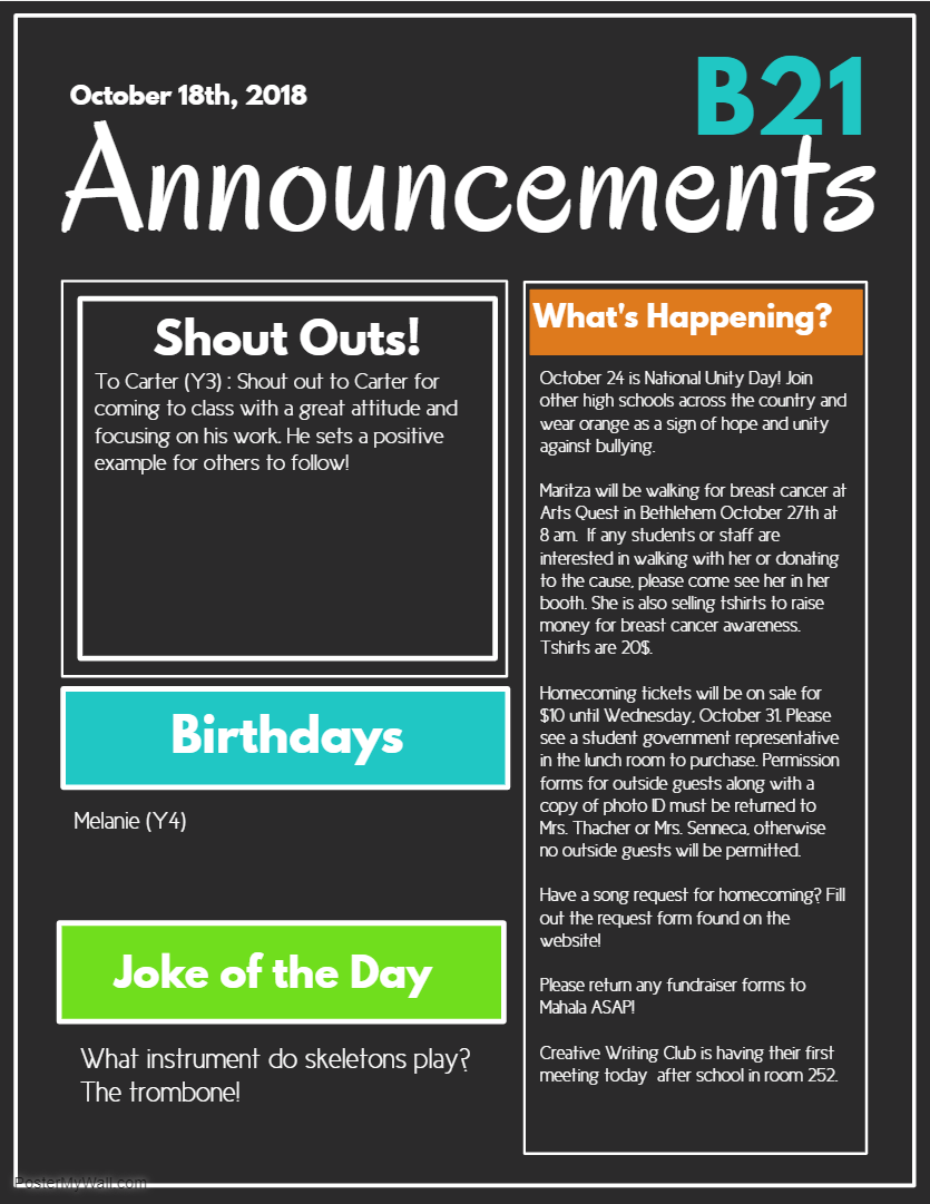 Announcements- Tuesday 11/14