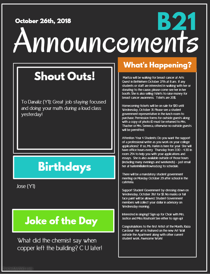 Announcements- Wednesday 11/8