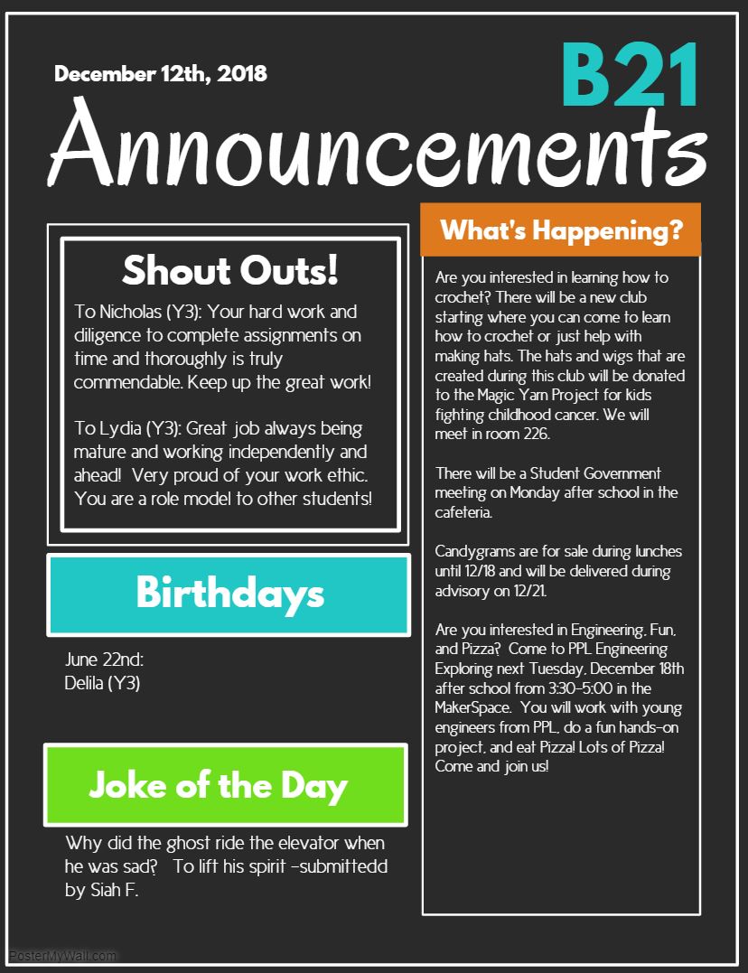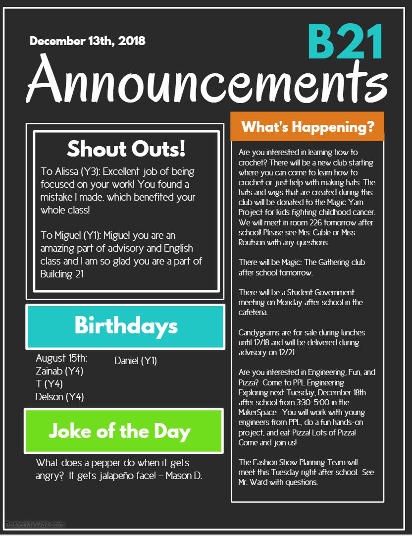 Announcements- 12/21